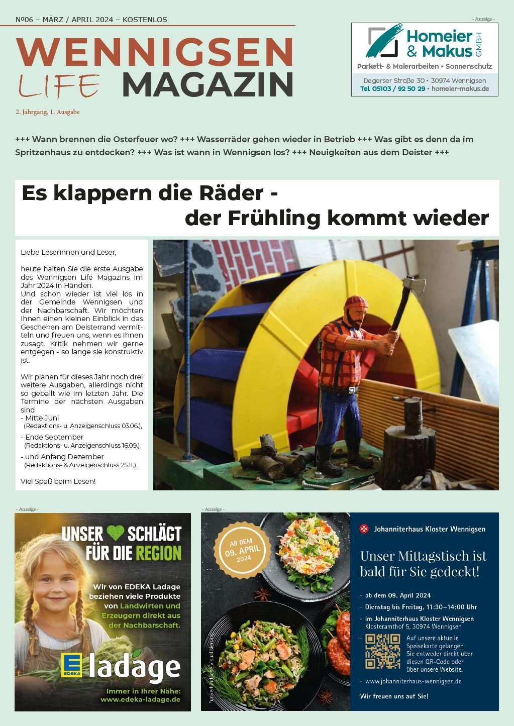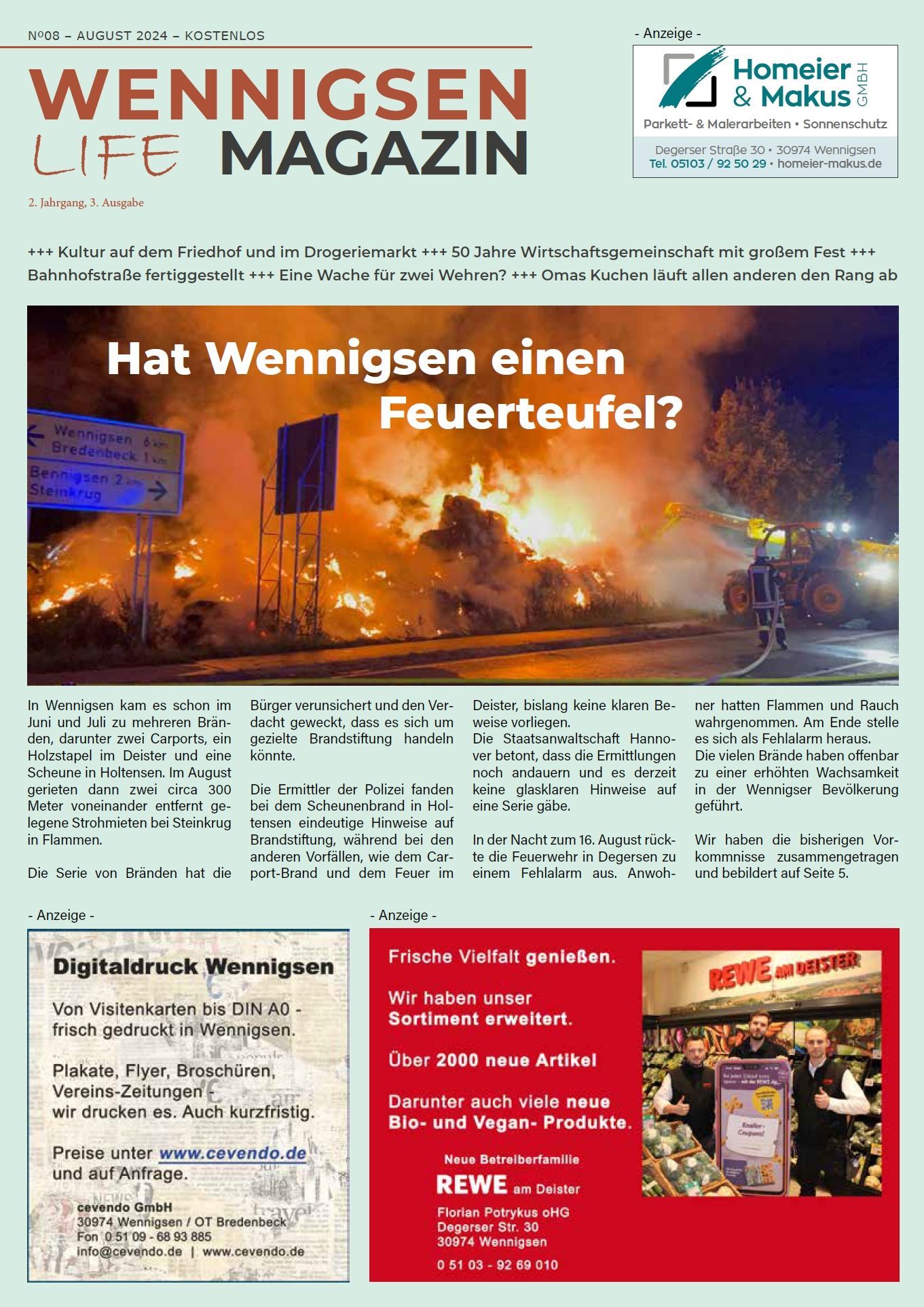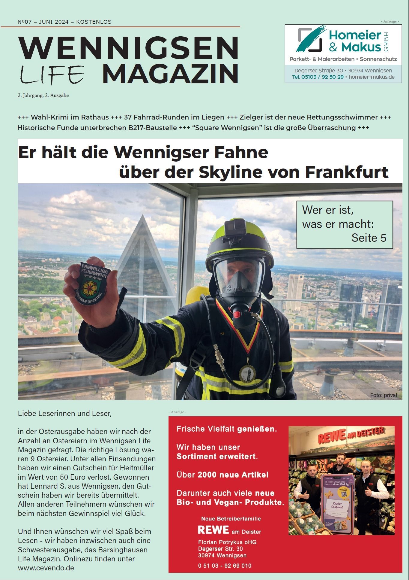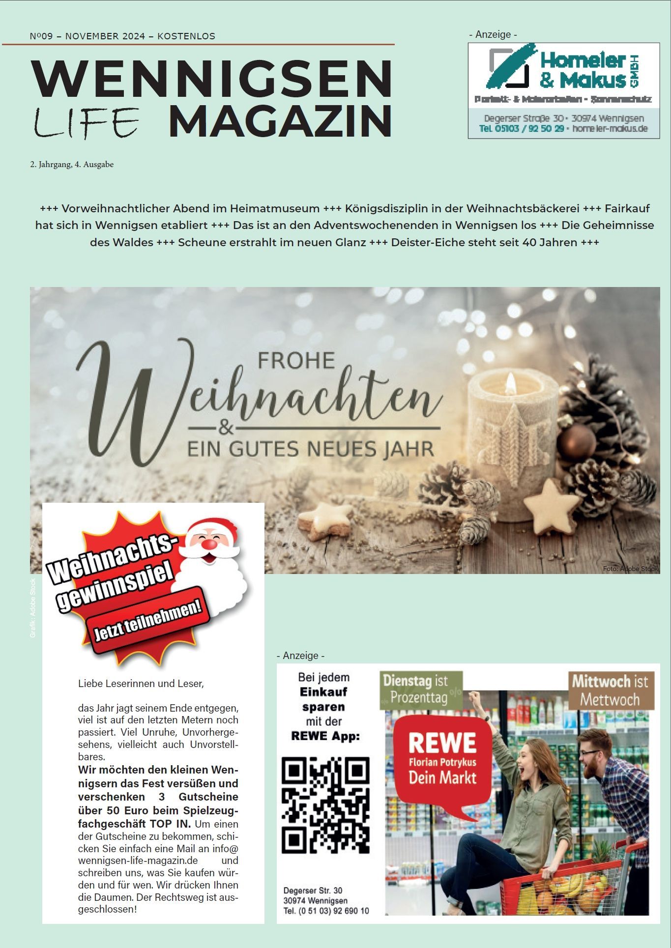 Anzeigen: 0 51 09 - 68 93 487. anzeigen@wennigsen-life-magazin.de